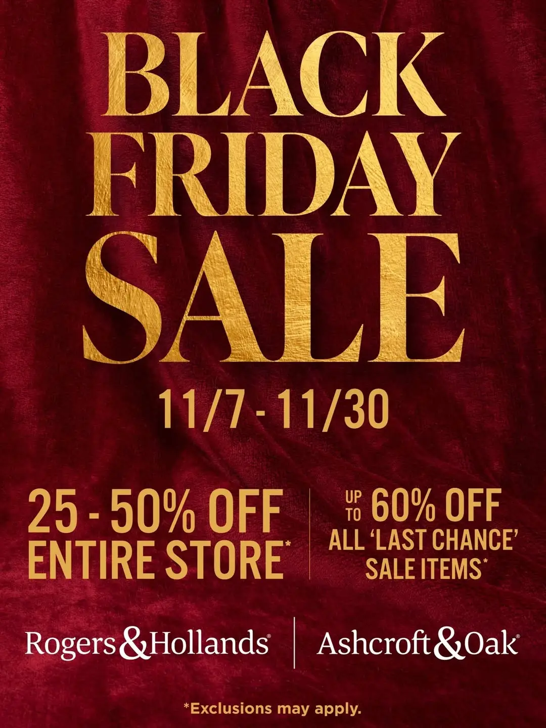 Black Friday starts now — 25–50% off storewide + up to 60% off Last Chance styles through 11/30.